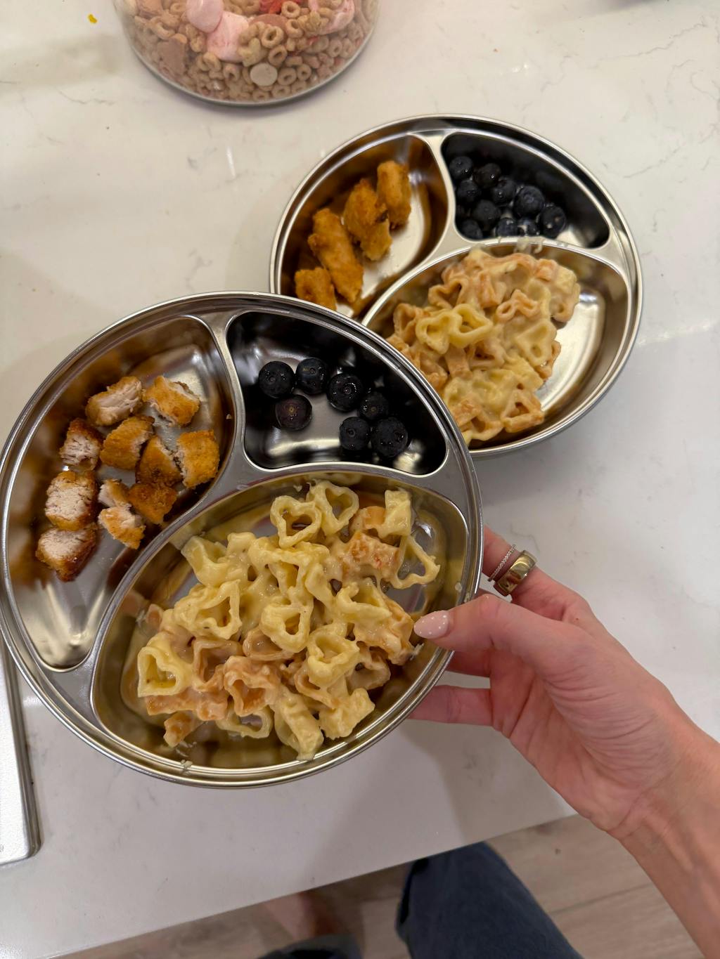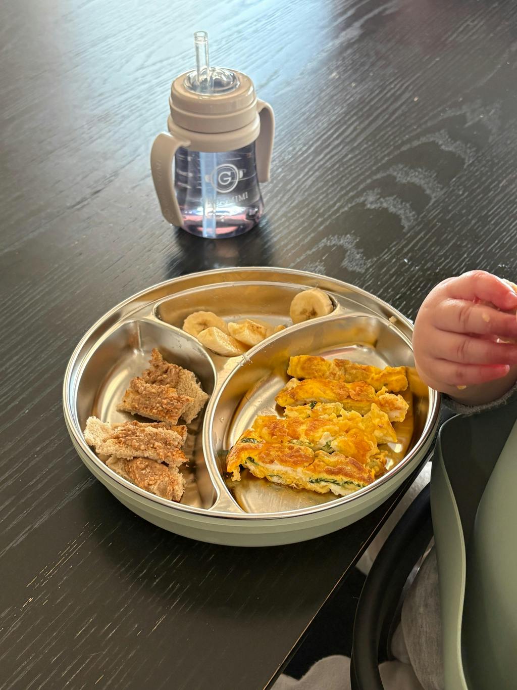 Besides all the benefits of stainless steel vs plastic one thing that really stood out to me is how deep the plate is. It’s great for saucy meals which I really love!